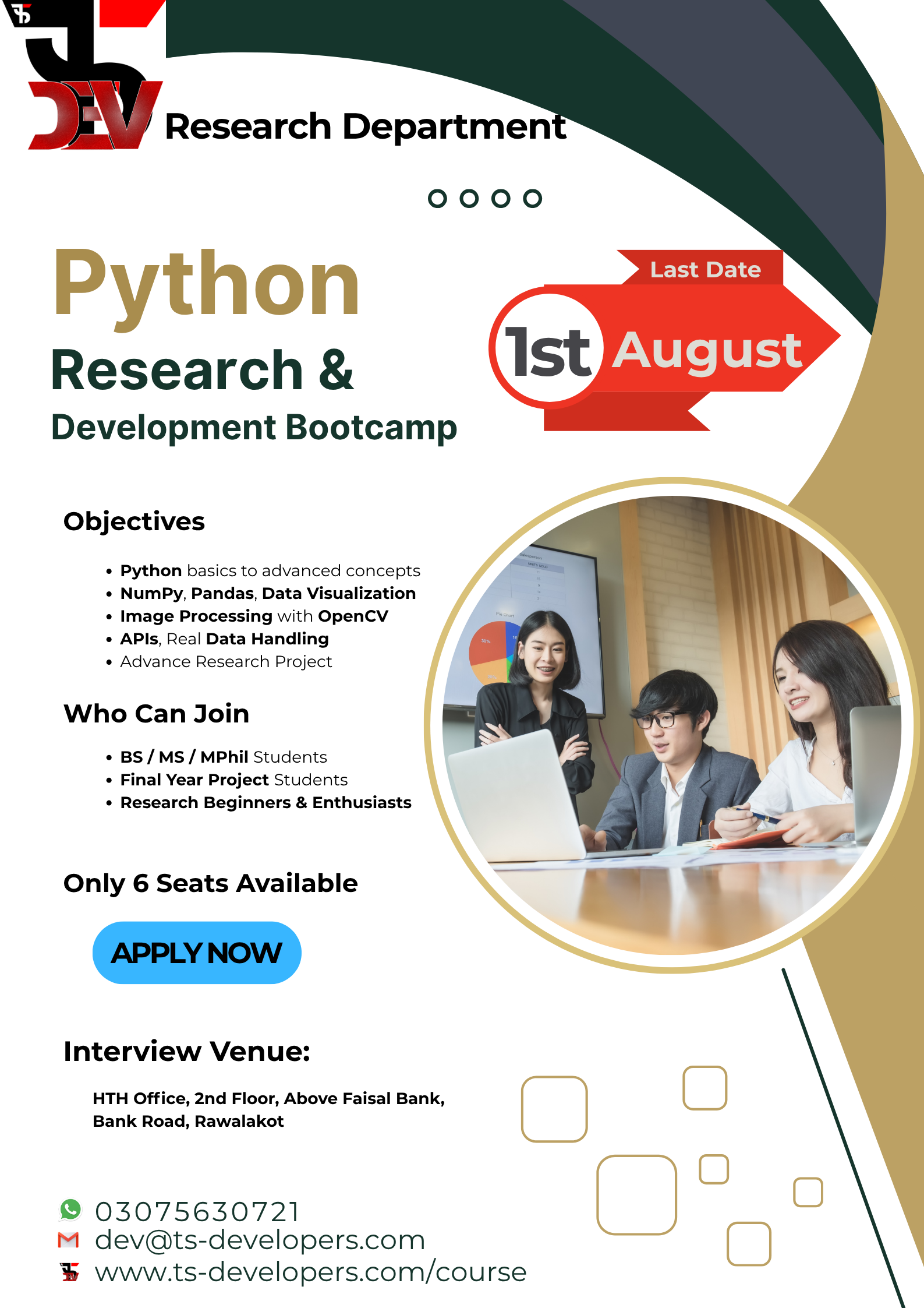 Dive into one of TS-Developers’ most in-demand courses — designed to help you build practical skills, work on real-world projects, and kickstart your journey as a professional developer or IT expert. Learn from mentors, practice with code, and grow with every module.